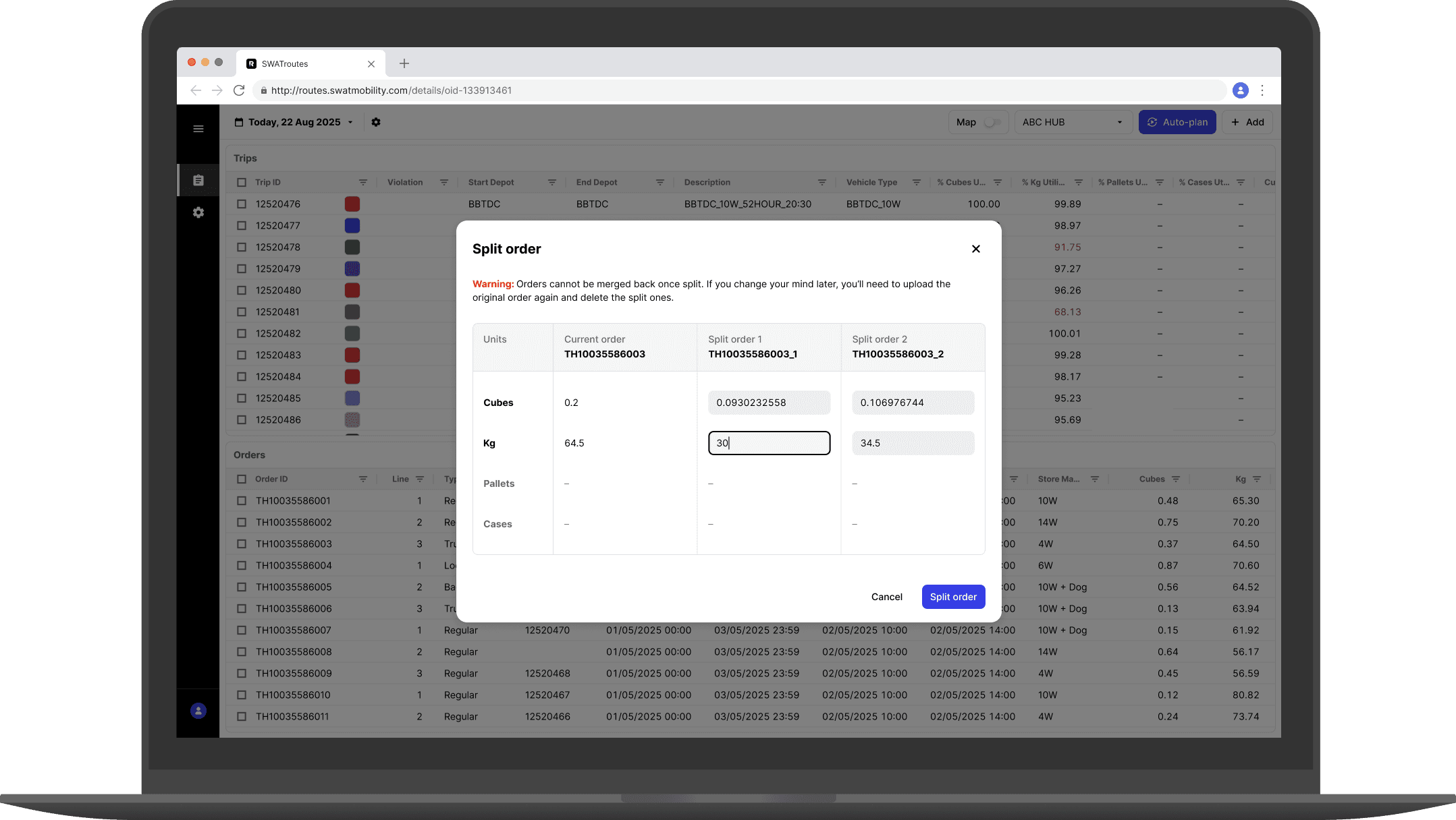 Adding a ‘split order’ feature to help delivery route planners optimise vehicle utility.